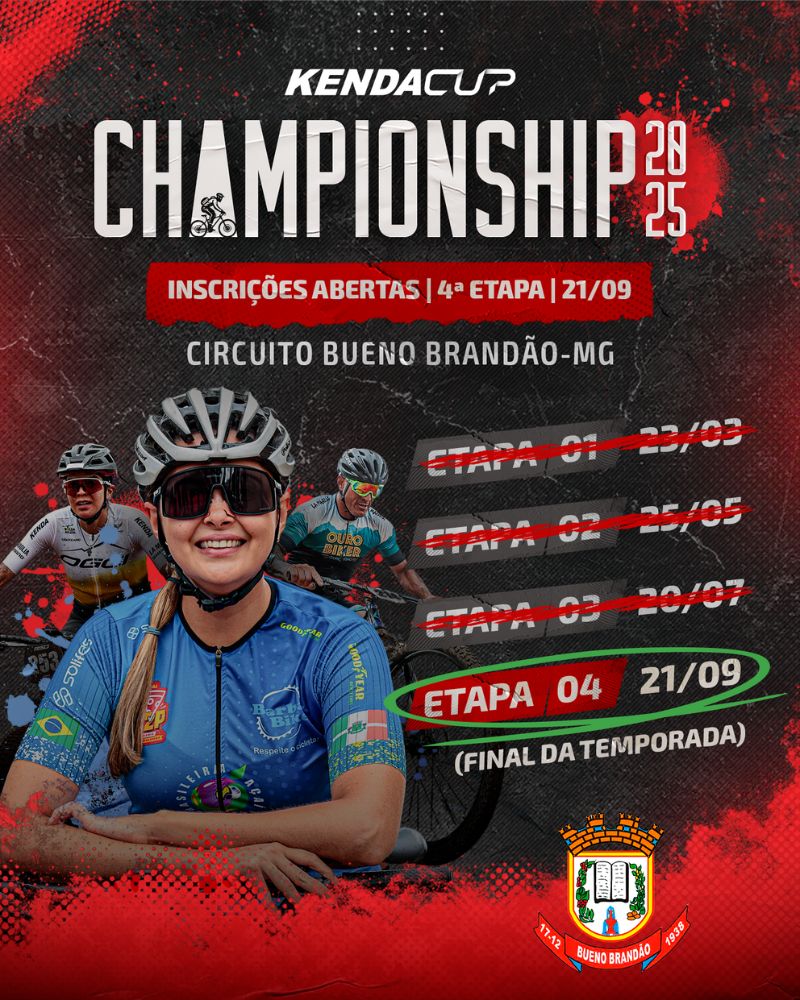 Está lançado o KENDA CUP CHAMPIONSHIP 2025 e você não pode ficar fora dessa! Será uma experiência única com percursos inéditos constituídos de estradas de terra e trechos de trilhas do puro mountain bike raiz. Disputado em modalidades PRO 50km, SPORT 40km, LIGHT 30km e a grande novidade do ano, largada exclusiva para a modalidade E-BIKE 40km dividido em mais de 60 categorias. A disputa será em 4 etapas. Então salve as datas aí! Dia 23 de março, 25 de maio, 20 de julho e a final 21 de setembro de 2025. Cada edição será um evento pontuado, constituindo um campeonato cumulativo com pontuação dobrada na etapa final em todas as categorias do ranking individual e equipes, aumentando as chances de quem está na disputa em busca da vitória do campeonato. E essa disputa é acirrada, viu! O Kenda Cup Championship conta ainda com um grande apoio em estrutura e seguro aos atletas. Sem contar a premiação que tem TROFÉU EXCLUSIVO e brindes para os top 5 além de camisa para o líder de cada categoria de todas modalidades PRO, SPORT, LIGHT e E-BIKE. Acha que é só isso? Ainda premiação extra na classificação Geral das modalidades PRÓ e SPORT. A primeira etapa será dia 23 de março em Espírito Santo do Pinhal-SP com um percurso sensacional passando por vinícolas, cafezais e montanhas do puro mountain bike. A cidade das próximas etapas, quer dar um palpite? Mas calma serão confirmadas e divulgadas em breve e garantimos que serão dentro do mesmo raio de cidades das temporadas anteriores. Foi dada a largada! O 1º lote está aberto com inscrição individual por apenas R$149. Estamos oferecendo também o pacote para as quatro provas que inclui um KIT PREMIUM por R$499. Fala sério se não compensa? Mas lembramos que esse pacote de quatro provas é limitado e esse preço é exclusivo nesse lançamento do Championship 2025.